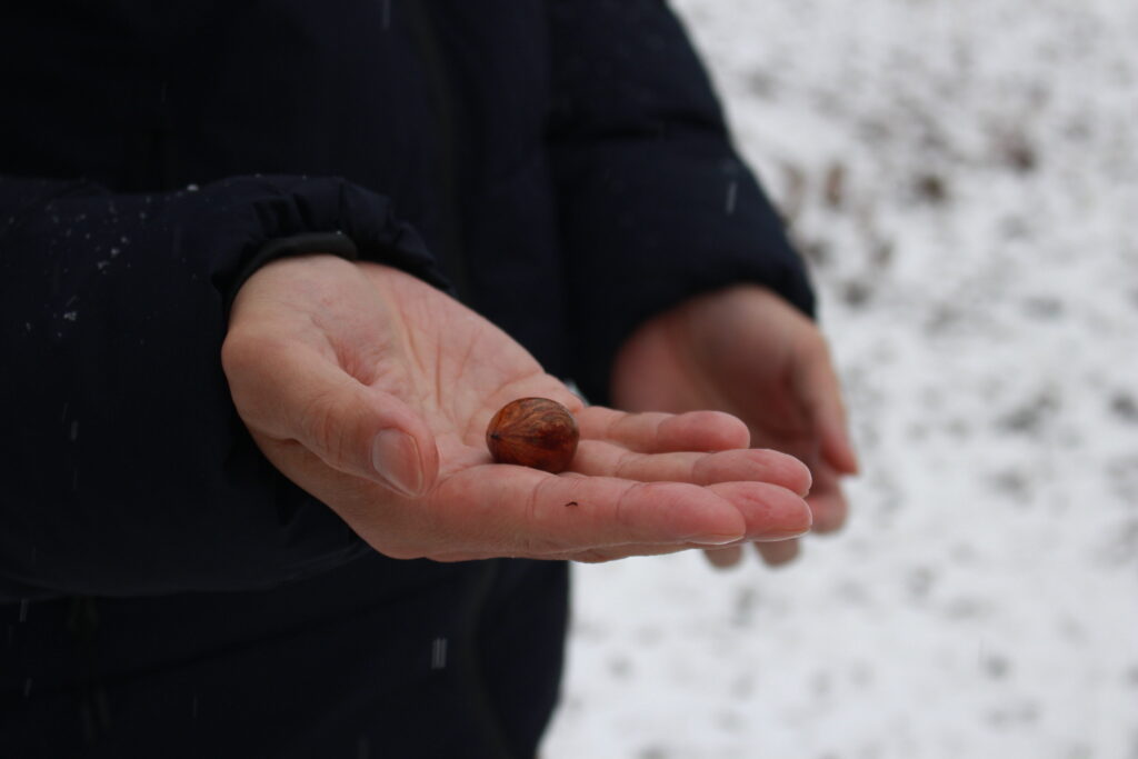 そして2024年、ついに初めての収穫を迎えます。これまで2カ所の圃場で結実していたものの、成熟前に落果する状況が続いていました。初年度の収穫数はおよそ20個。一般に収穫まで7〜8年かかるとされるピーカンナッツにおいて、植樹から4年8カ月での収穫は、産地化へ向けた確かな手応えとなりました。