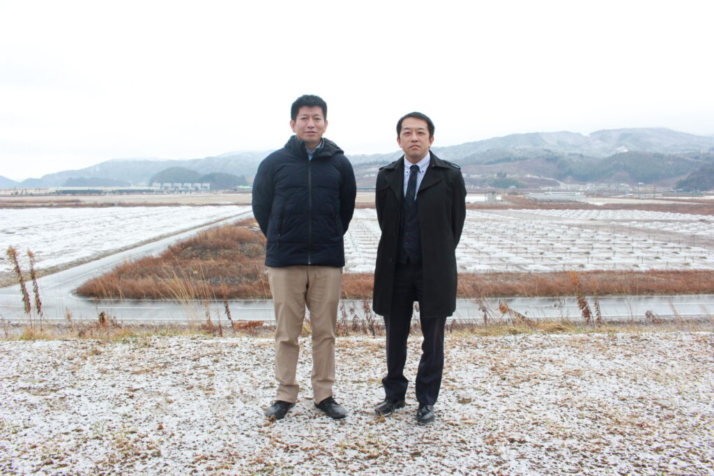 この取り組みの中心にいるのが、大学時代に陸前高田を訪れた経験が心に残り、震災後に移住を決意した「一般社団法人ピーカン農業未来研究所」代表理事の大林孝典さんと、生まれも育ちも陸前高田市で、市役所職員として地域の歩みを内側から支えてきた大和田智広さん。復興の先にある農業のカタチや地域の未来について、お話を伺いました。